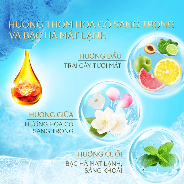 - Cảm giác mát lạnh suốt ngày dài: Chiết xuất bạc hà và các thành phần thiên nhiên giúp mang lại cảm giác mát lạnh, sảng khoái.