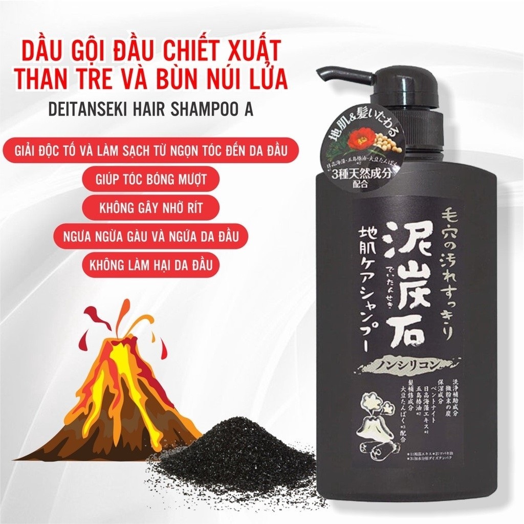 - Làm sạch sâu tóc và da đầu nhờ thành phần than tre và bùn tro núi lửa, giúp loại bỏ bụi bẩn, bã nhờn tích tụ.