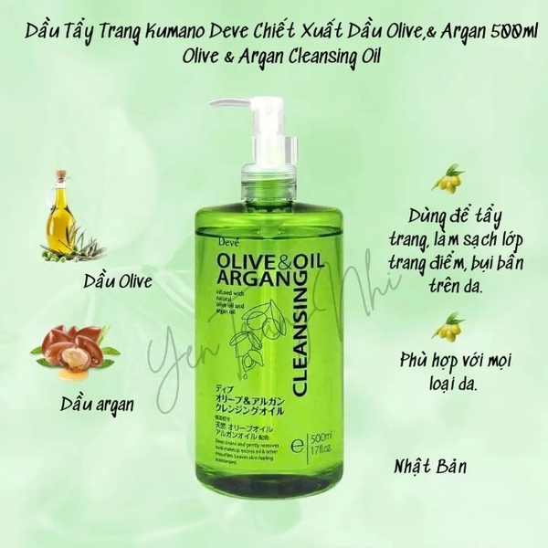 Công dụng | Dầu tẩy trang chiết xuất Olive & Argan Deve dạng gel lỏng, trong suốt, đánh bay lớp trang điểm, bụi bẩn và dầu thừa, dưỡng ẩm cho da sáng khỏe và mịn màng. |
