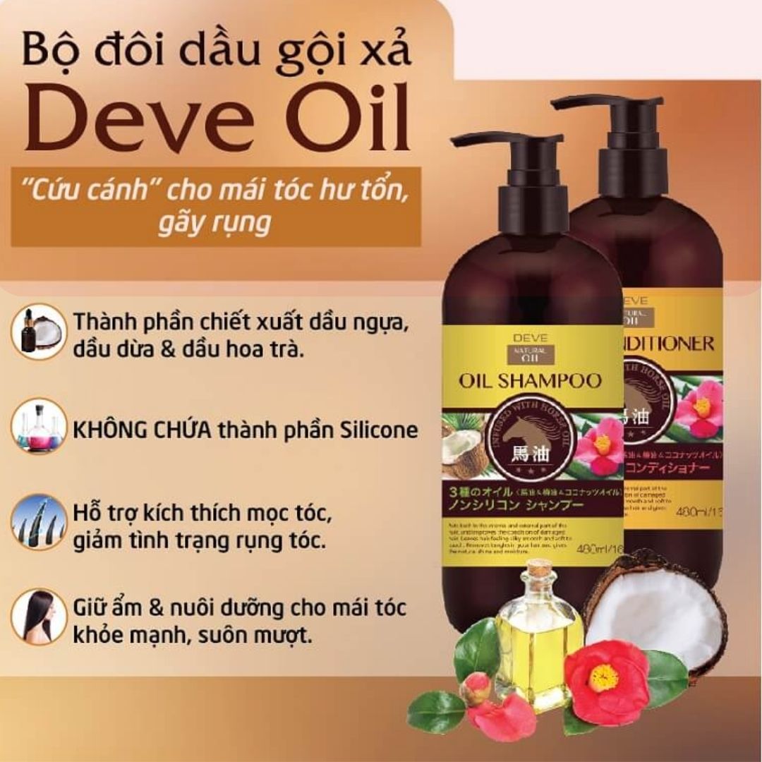 Bộ Dầu Gội & Dầu Xả Deve Natural Oil 480ml – Giải Pháp Chăm Sóc Tóc Yếu, Giảm Gãy Rụng