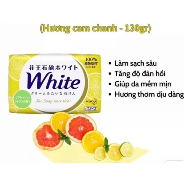 Xà Phòng Kao White Hương Cam Chanh Làm Sạch Dưỡng Ẩm (130g) đến từ thương hiệu KAO nổi tiếng của Nhật Bản là sản phẩm chăm sóc da toàn thân với thành phần từ thiên nhiên, nhẹ dịu và phù hợp cho cả gia đình. Với chiết xuất thực vật và hương cam chanh tươi mát, sản phẩm giúp da luôn sạch mịn, mềm mại và thơm mát tự nhiên.