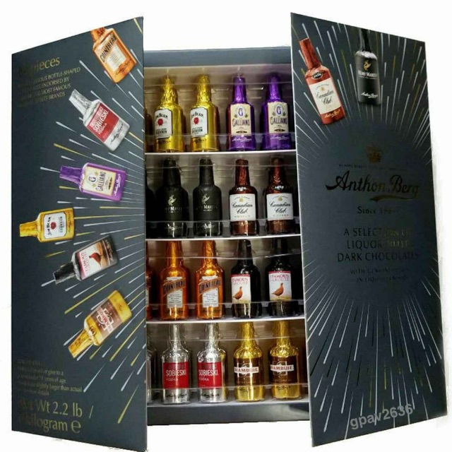 Sản phẩm sô – cô – la hình chai rượu, hộp 64 chai cùng với 8 hương vị rượu nổi tiếng sẽ là một món kẹo là miệng sang trọng và một món quà vô cùng ý nghĩa để tặng bạn bè, những người mà bạn yêu thương.socola hình chai rượu Khác với những hộp socola truyền thống,