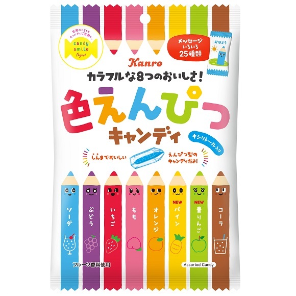 Kẹo hoa quả KANRO sắc màu hình bút chì vô cùng đáng yêu được chiết suất từ trái cây tươi, soda làm nên viên kẹo làm bạn lưu luyến.