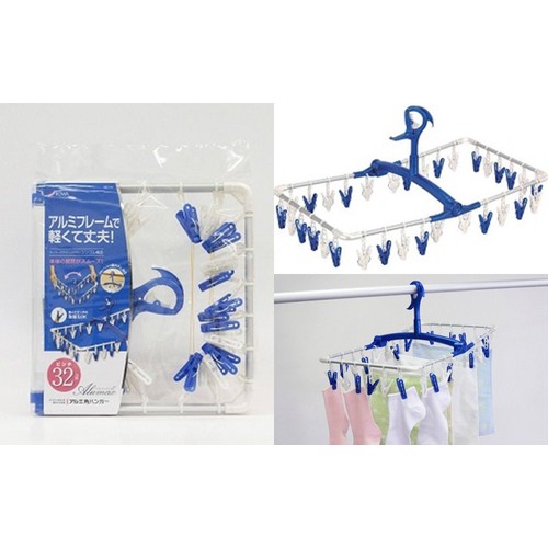 - Móc gồm 32 kẹp thích hợp phơi các đồ như khăn, tất, tã trẻ nhỏ, giúp tiết kiệm diện tích khi phơi đồ