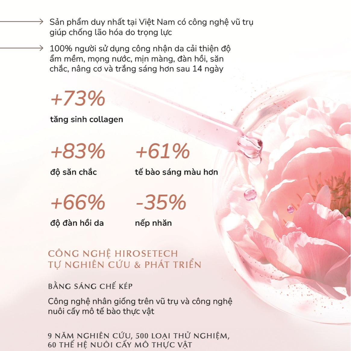 - Công nghệ Hirosetech: Giúp tối ưu hóa khả năng thẩm thấu, mang đến sự dưỡng ẩm tối ưu và làm sáng da.