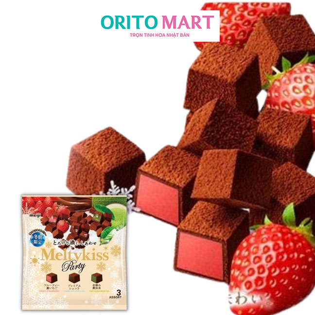 2. Thành phần Socola Tươi Meiji Meltykiss Dạng Gói Mix 3 Vị Socola, Dâu tây. Matcha