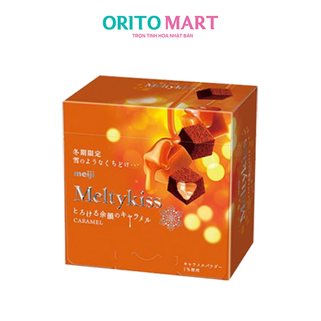 - Meiji Meltykiss là những viên socola nama nhỏ hình khối, 1 hộp gồm 14-15 viên được bọc riêng lẻ như những viên kẹo, rất dễ dàng cho việc bảo quản so với các hộp nama thông thường.
