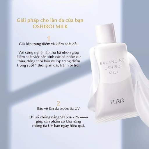 Kết cấu sữa mỏng nhẹ: Dễ tán đều, thấm nhanh, không gây bết dính, không để lại vệt trắng, phù hợp cho mọi loại da, đặc biệt da dầu và hỗn hợp thiên dầu.