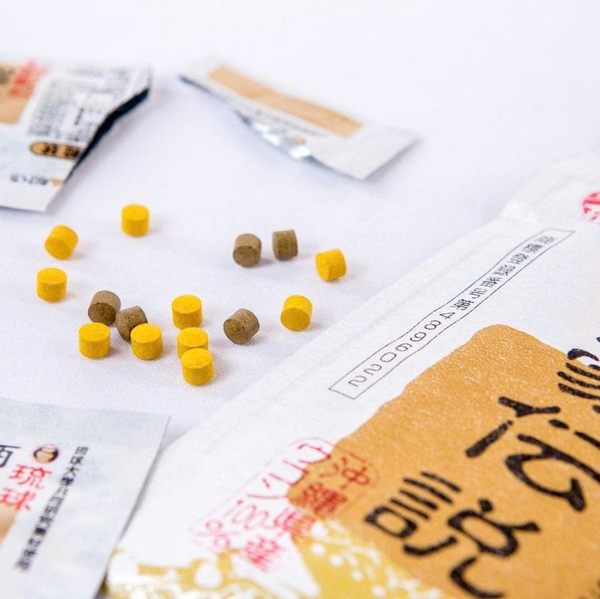 - Mỗi gói nhỏ chứa 10 viên vàng và 5 viên xanh nâu – dùng trong một lần uống.