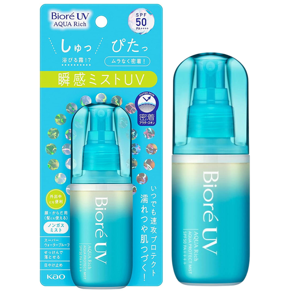 Kao Biore UV Aqua Rich Aqua Protect Mist 60ml là sản phẩm chống nắng dạng phun sương (mist) với chỉ số SPF50 PA++++, bảo vệ làn da khỏi tác hại của tia UV một cách hiệu quả. Sản phẩm dễ dàng thẩm thấu vào da, không gây nhờn rít và đặc biệt không để lại vệt trắng, giúp làn da bạn luôn mịn màng và tươi sáng. Với công thức nhẹ nhàng và cung cấp độ ẩm cho da, sản phẩm thích hợp cho mọi loại da, kể cả da nhạy cảm.